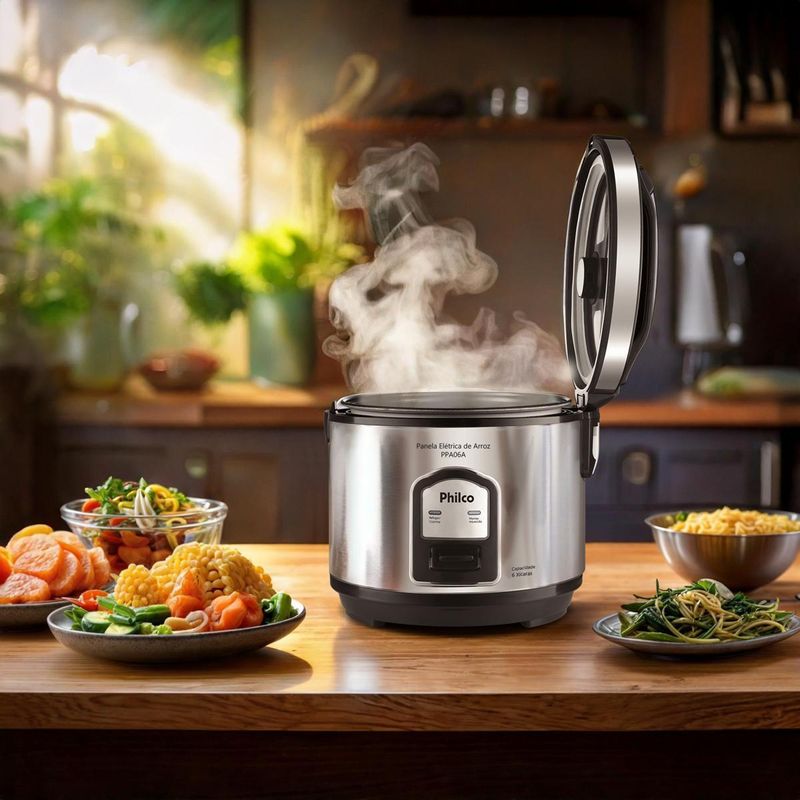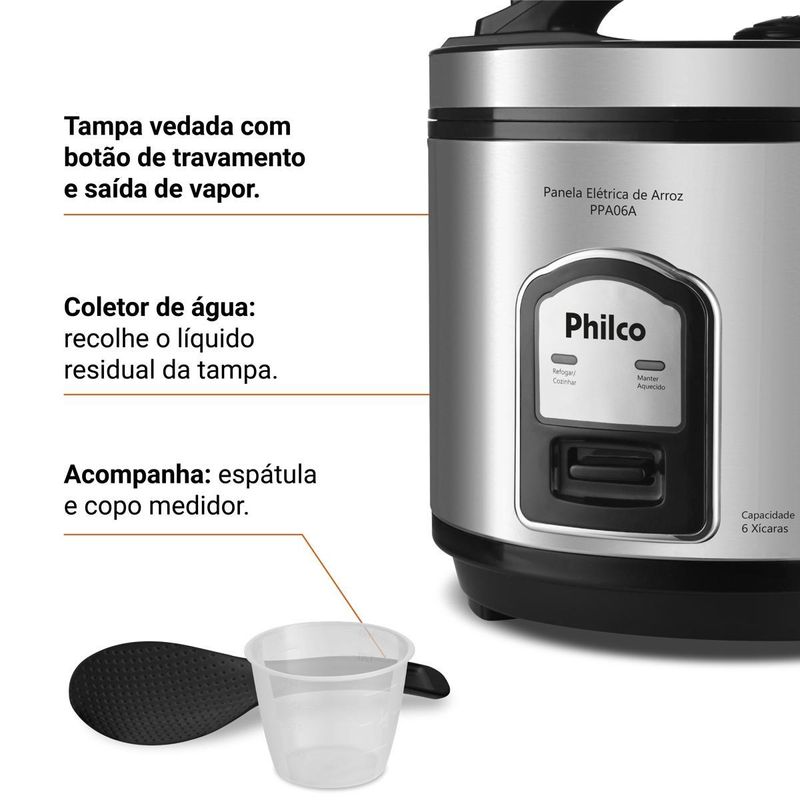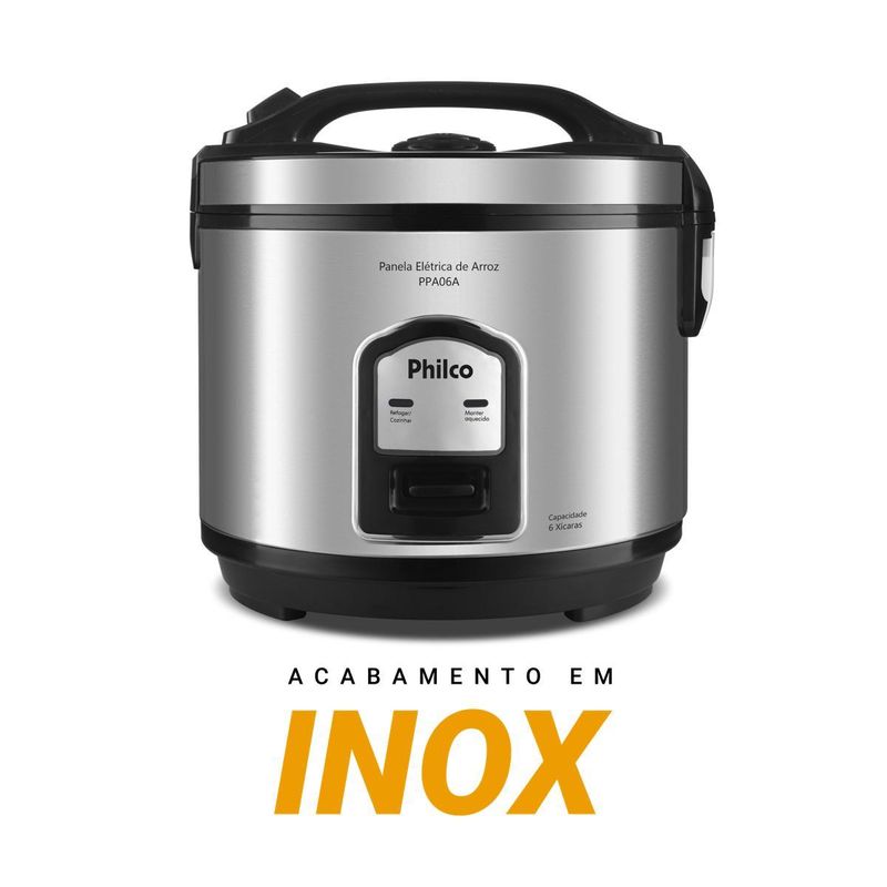 Panela de Arroz Elétrica Philco 6 Xícaras Inox 400W PPA06A